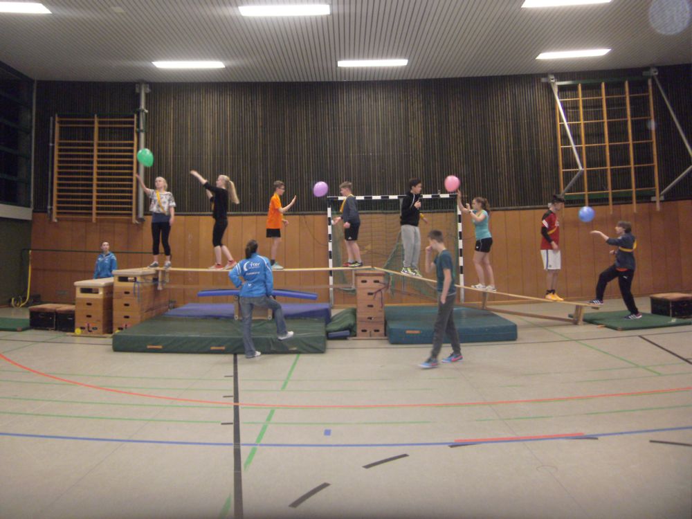 Capture the Flag, bei dem wir in der Halle unsere eigenen Festungen bauen konnten, war ein spannendes Spiel für alle (Bildergalerie). Abends trafen wir uns mit einer anderen Gruppe zu Kooperationsspielen. Alle arbeiteten super zusammen und haben sich dabei kennengelernt. Zum Abschluss haben wir noch eine große Runde Völkerball zusammen gespielt. Morgen geht's ins Schwimmbad!