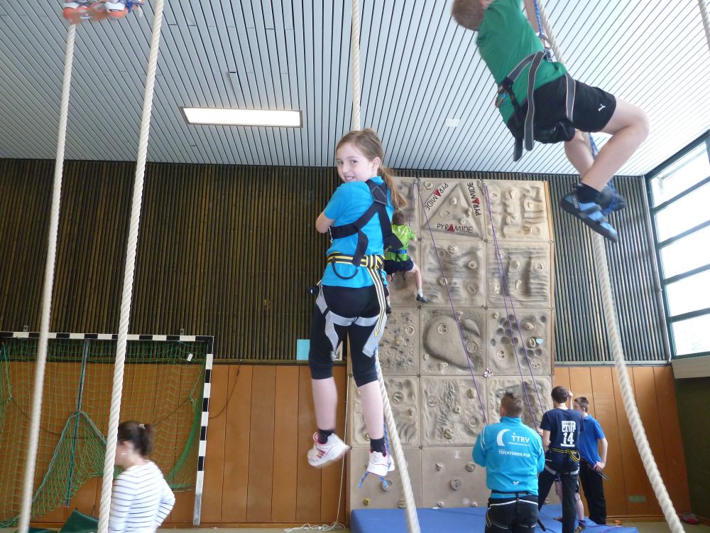 cl20150401039Der letzte komplette Tag der Freizeit war mit Aktivitäten nur so gespickt. Vormittags wurde noch "normal" Tischtennis gespielt. Nach der Mittagspause aber, ging es erst richtig los! Dem Wetter wurde Tribut gezollt, indem wir Schlitten fuhren, während gleichzeitig für die Schhneescheuen die Kletterwand zur Besteigung vorbereitet wurde. Im Anschluss mussten alle nochmal richtig ran. Sieben Betreuer machten sich als Zuspieler am Balleimer stark und ließen nur so die Bälle fliegen. Obwohl die Kräfte am Ende der Woche schon schwanden, legten sich die Kinder mächtig ins Zeug. Erschöpft ging es abends in Casino, indem die eingeübten Gesellschaftsspiele im Wettkampf gespielt wurden. Ein Highlight für alle waren dabei die Cocktails von Mike und Mille.